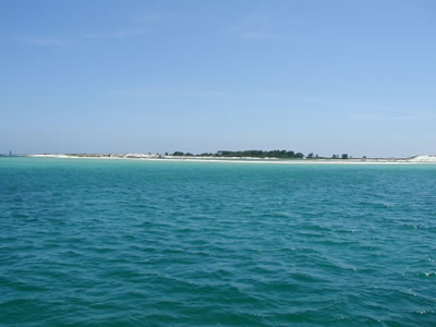 It takes a good twenty minutes to get inside the pass and to calm water. Once inside, we are greeted by turquoise water against white sugar sands.